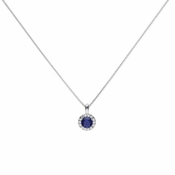 Diamonfire round silver pendant with a round sapphire blue coloured Diamonfire zirconia, cluster necklace.