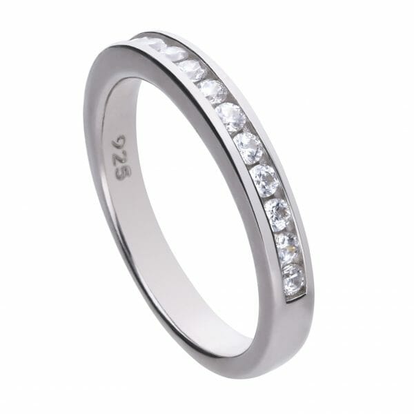 Ring silver with white zirconia stones and channel setting