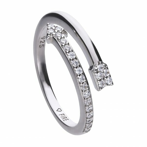 Arrow ring silver eith white zirconia stones and open-ended band. Total ca 0.23 ct
